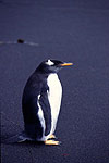 Der Eselspinguin (Pygoscelis papua)ist wesentlich kleiner als der Königspinguin
