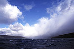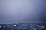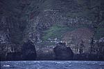 dickem Nebel auftauchenden Umrisse der wilden Südküste Kerguelens.