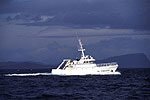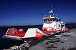 | Die organisatorische Verwaltung der Inseln wird im Wesentlichen von zwei unabhängig voneinander operierenden Organisationen durchgeführt. Zum einen die TAAF (Bild links), die für sämtliche Aufgaben der Logistik, Versorgung und Instandhaltung auf den Kerguelen zuständig ist. Der TAAF gehört auch das kleine Transportschiff "L`Aventure II" (Bild rechts), das zum Be- und Entladen des großen Versorgers Marion Dufresne benutzt wird und sich nur im Golf de Morbihan fortbewegen darf / kann. | ||